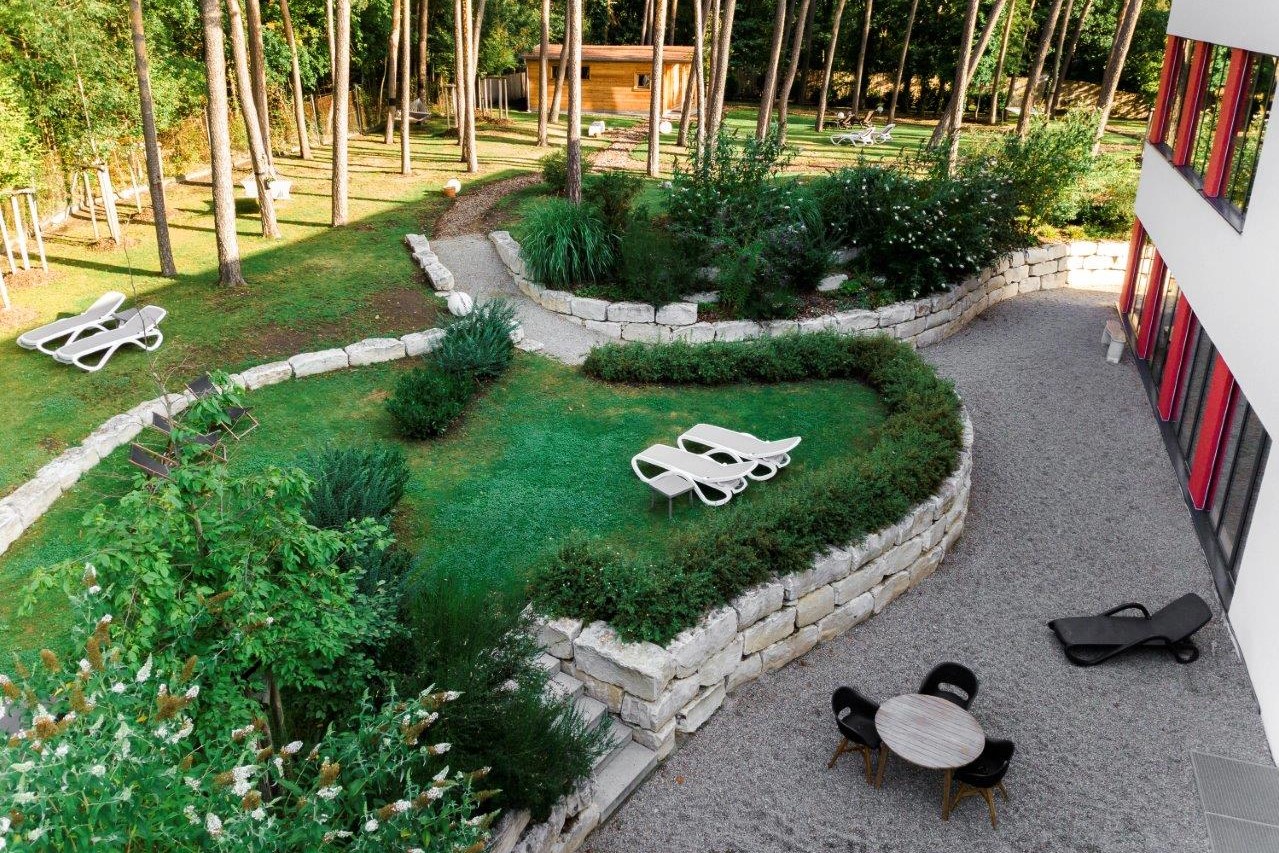 Angebot Wellness: u. a. finnische Außensauna, finnische Sauna und Biosauna sowie Dampfbad innen, drei Ruheräume