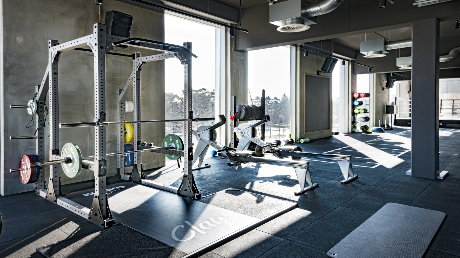 Angebot Training: Precor-Cardio- und Kraftgeräte, Freihantelbereich, große funktionelle Trainingsfläche mit Eleiko-Ausstattung, Boxtraingsbereich mit Boxring und Bag Cage, extra Bereich für Stretching, Faszientraining und Mobilitätstraining, Raum für Kinesistraining (Technogym)