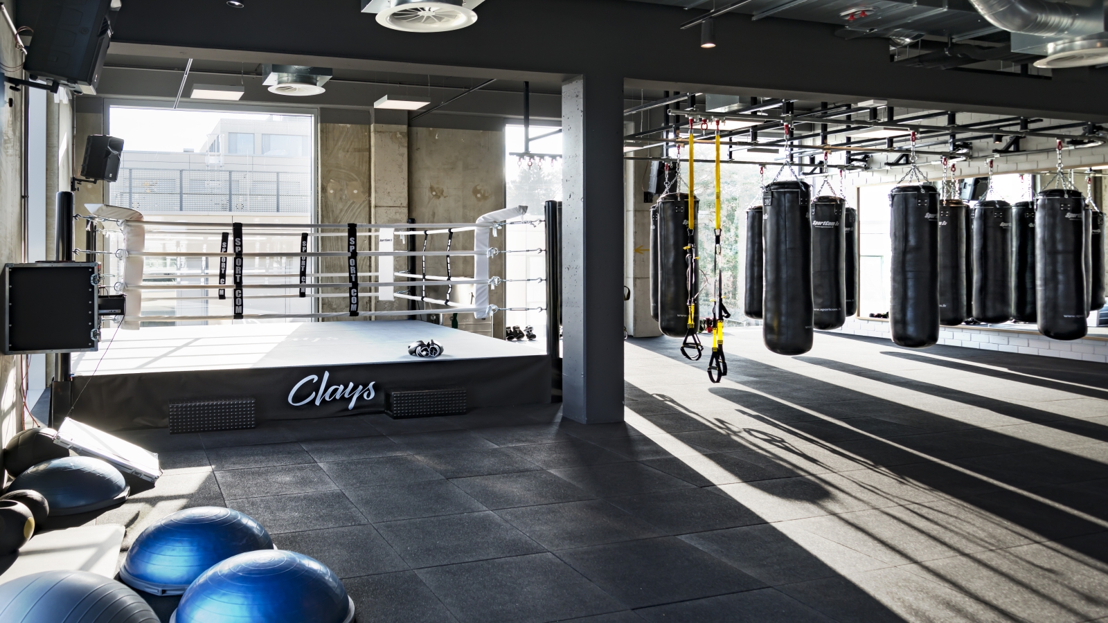 Urban, funktionell und schick – so könnte man die beiden Ebenen beschreiben, auf denen die Mitglieder trainieren. Innenarchitekt Thomas Müller hat auf asymmetrische Räume gesetzt, die der Anlage eine ganz besondere Ausstrahlung verleihen. Nicht nur architektonisch unterscheiden sich die beiden Ebenen stark. Alles, was mit viel Power und Action verbunden ist, wie zum Beispiel die Kurse auf der großen Functional-Training-Fläche oder die Boxkurse, ist oben angesiedelt – unten dagegen geht es etwas gemütlicher zu: Hier finden beispielsweise die Body-&-Mind-Kurse statt. Mit 130 Kursen pro Woche hat der Clays Sports Club nicht nur quantitativ einiges zu bieten. Denn auch die Vielfalt der Kursangebote ist beeindruckend. So finden zum Beispiel zahlreiche Aquakurse, unter anderem auch Yoga auf Surfbrettern, im 25-Meter-Pool statt. Auf der Trainingsfläche erfreuen sich die Boxkurse großer Beliebtheit. Egal ob Anfänger oder ambitionierter Amateurboxer, egal ob Frauen oder Männer – die verschiedenen Kurse stoßen auf großes Interesse.