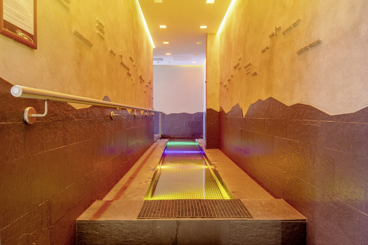 Angebot Wellness: Beauty-, Massage- und Ayurveda-Angebote, acht Behandlungsräume auf insgesamt 180 qm, vier Massageräume, zwei Beautyräume, ein Pediküre- und ein Shiatsuraum, vier Solarien, ein Relaxpool, 500 qm Dachterrasse, sieben Saunen, ein Kneipp-Becken, Eisspender, Fußbäder