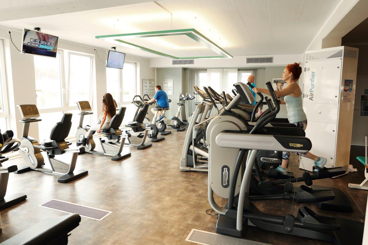 Angebot Groupfitness: Zertifizierte Wirbelsäulengymnastik, Yoga, Aqua-Fit, Bootcamp, Spinning, Bike-Touren, Figurkurse Angebot Wellness: Finnische Sauna und Tepidarium mit Ruheraum und Freiluftterrasse, Solarien, Lymphdrainage, Massageliegen, Radiofrequenztherapie, Wellnessmassagen