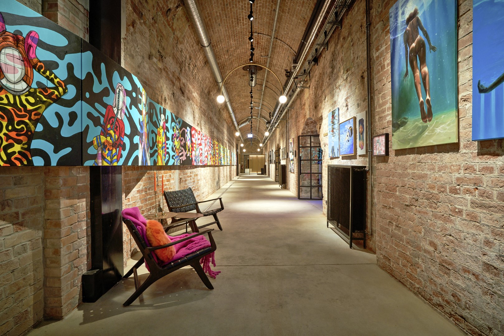 Der Club beeindruckt bereits beim Betreten durch sein außergewöhnliches Ambiente. Die hohen Kuppeldecken werden durch individuelle Lichtinstallationen perfekt in Szene gesetzt, die ehemaligen denkmalgeschützten Brauerei- Kühlbecken wurden zu gemütlichen Relax Lounges umgebaut. Die Inneneinrichtung ist inspiriert von urbanen Kunst- und Musikbewegungen, was sich in einem stylishen und zugleich einladenden Ambiente widerspiegelt. Die Wände sind mit Graffiti-Kunstwerken geschmückt und die durchdachte Beleuchtung sorgt für eine energiegeladene Stimmung. Hier verbindet sich Underground- mit High-Class-Training. Auch das restliche Interieur überzeugt: ein freischwebender Baumstamm als Tisch neben der Health Bar, schwere Samtvorhänge, die den Loungebereich separieren, sowie Kunst und Skulpturen in jeder Trainingsarea. Darüber hinaus befindet sich im Inneren des Clubs eine eigene Galerie mit regelmäßig wechselnden Vernissagen. Dieses Gym ist kein gewöhnlicher Trainingsort, sondern ein angesagter Premiumclub mit Fokus auf kreativen Workouts kombiniert mit Musik. Der große Loungebereich lädt zum Relaxen ein, an der Coffee & Health Bar gibt es Getränke und gesunde Snacks. Das Team ist superengagiert, hilfsbereit, wissbegierig und kollegial. Alle Mitarbeiter verbindet die große Leidenschaft für Fitness & Lifestyle.