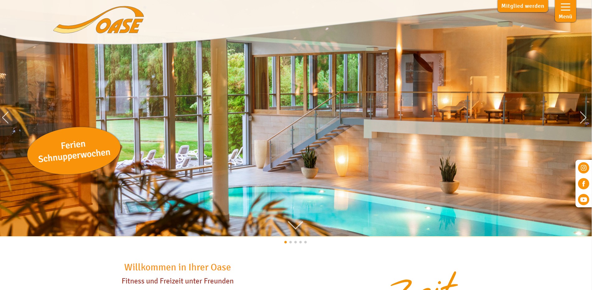 Beschreibung: Die „Oase“ ist der schönste Ort für Bewegung und Entspannung auf höchstem Niveau. Jeder Tag ist wie ein Kurzurlaub zu Hause. Die Qualität spiegelt sich sowohl im Team als auch im Ambiente und in der Ausstattung wider.