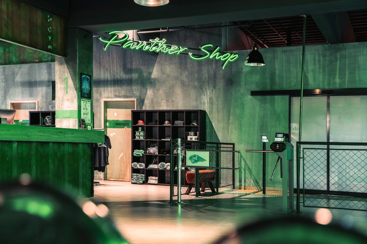 Der Style des Clubs ist modern und jugendlich, das Design ist eine einzigartige Kombination aus Rustikal und Modern und sorgt für eine angenehme Wohlfühlatmosphäre. Die Optik wird von den Farben des Augsburger Eishockeyclubs geprägt – Grün und Schwarz bestimmen das Bild. Das Logo – der Pantherkopf – ist Teil des Schriftzugs. Wandgemälde und Ausstellungsstücke von lokalen Künstlern vervollständigen das Gestaltungskonzept.