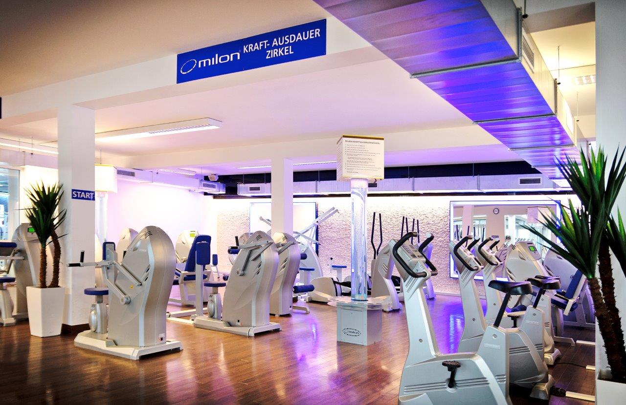 Angebot Training: große Trainingsfläche mit Nautilus-Geräten, Freihanteln, Kabelzügen, Human-Sport, David-Rückenkonzept, Cardio, zwei milon-Zirkeln (Kraft und Kraft-Ausdauer), Faszientrainingsgeräten, Functional-Training-Bereich, Power Plate
