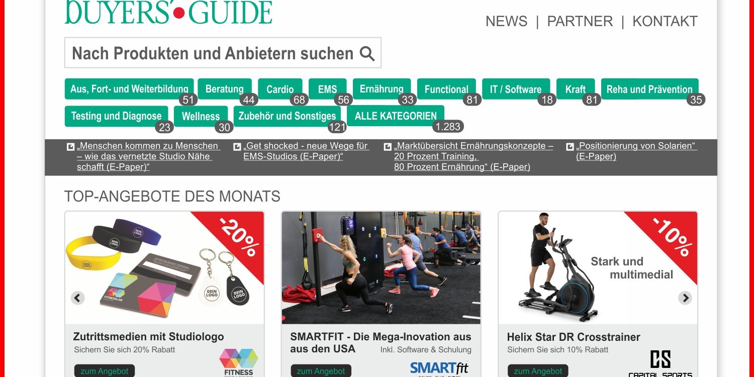 Wer in den gängigen Suchmaschinen etwas sucht, der findet ganz schnell das, was alle Welt sucht – aber nur wenige ausgewiesene Profiangebote und Profiinformationen. Der buyers‘ GUIDE bietet genau das: ein funktionelles Register ALLER relevanten Anbieter der Fitnessindustrie, strukturiert nach den aktuellen Fitnessmarktkategorien. Die Einträge sind über moderne Suchfunktionen auffindbar und enthalten, wenn die verschiedenen Anbieter es wollen, jede Menge zusätzlichen Content, Hintergrundinfos und weiterführende Verknüpfungen.