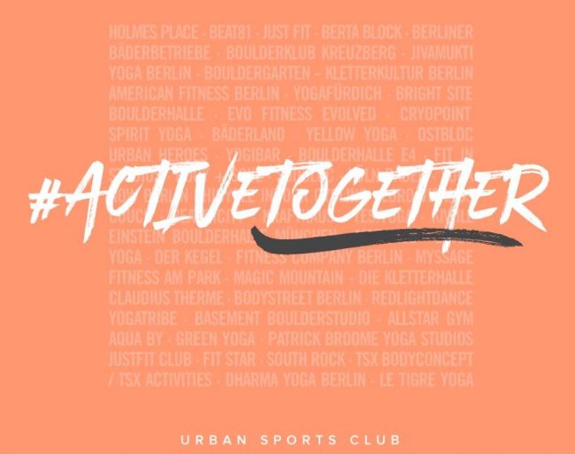 Urban Sports GmbH ǀ Mit der neuen Social-Media-Kampagne #activetogether animiert Urban Sports Club seine Mitglieder jetzt, aktiv zu bleiben und Kurse zu besuchen.