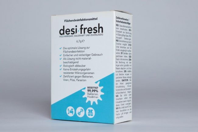 Desi-Fresh UG ǀ desi-fresh ist ein neues Flächen- und Textildesinfektionsmittel in Pulverform.