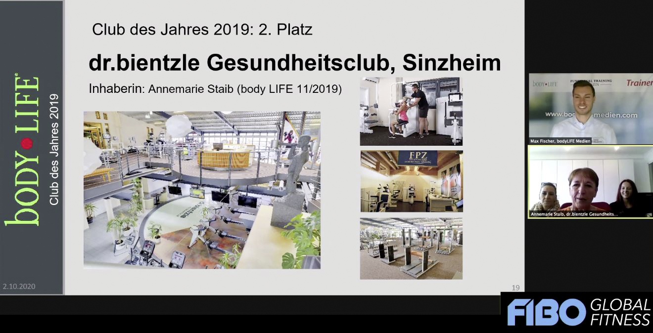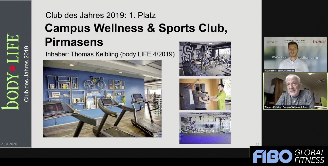 Erstmals wurde die Auszeichnung „body LIFE Club des Jahres“ per Online-Event verliehen. Im Rahmen der FIBO@business ging der begehrte Titel nach Pirmasens an den „Campus Wellness & Sports Club“. Das Siegertreppchen komplettieren der „dr.bientzle Gesundheitsclub“ in Sinzheim und der „Quest Club“ in Kolbermoor.