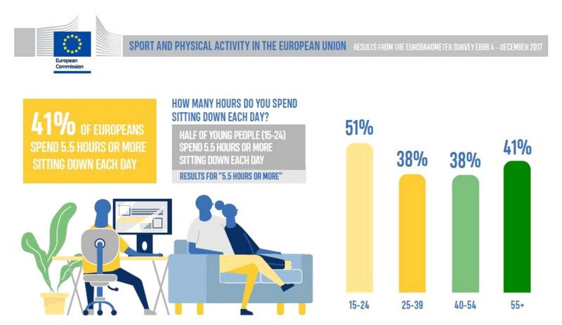 Wir bewegen uns zu wenig! 38% der Deutschen machen laut der Ergebnisse des 2018 veröffentlichten Eurobarometers so gut wie nie Sport bzw. bewegen sich zu wenig. Der Mindestanspruch an körperlichen Aktivitäten ist rückläufig, die Bevölkerung wird immer älter und ein Großteil der Menschen übt nur noch sitzende Tätigkeiten aus. Die Europäische Woche des Sports stellt sich mit #BeActive dem Bewegungsmangel entgegen.
