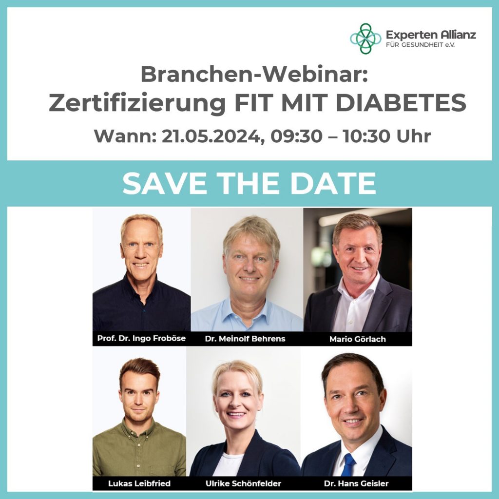 Du möchtest erfahren, wie Du Deine Einrichtung zertifizieren lassen kannst und welche exklusiven Vorteile Du als Mitglied der Experten Allianz hast? Dann melde Dich gleich zu unserem nächsten Branchen-Webinar mit Mario Görlach, Dr. Hans Geisler, Prof. Dr. Ingo Froböse, Lukas Leibfried und unserem Gastreferenten, Dr. med. Meinolf Behrens (Arzt für Innere Medizin, Diabetologe (DDG)), an. Die Moderation liegt bei unserer Sprecherin Ulrike Schönfelder.
