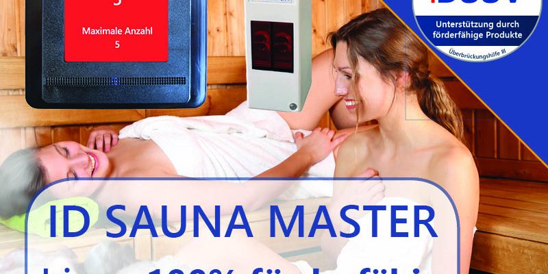 iDTRONIC GmbH ǀ Der „ID SAUNA MASTER“ von iDTRONIC ist bis zu 100 Prozent förderfähig, heißt es in einer Mitteilung. Laut Regularien der Überbrückungshilfe III fällt der „Sauna Master“ unter die förderfähigen Produkte zur Pandemiebekämpfung. Das Tool kann in Fitnessstudios, Sport- und Wellnesseinrichtungen eingesetzt werden und erfasst die ein- und ausgehenden Personen z. B. in Saunen. So sollen Betreiber dabei unterstützt werden, die behördlich vorgegebene maximale Auslastung einzuhalten.
