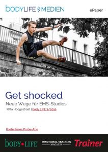 Im „EMSRaum“ in Hamburg wird in Kleingruppen mit dem Sling Trainer und Kettlebells unter Strom trainiert. Die Geschäftsführerin Melanie Weisbrod setzt auf Gruppen mit maximal vier Teilnehmern. Allerdings ist bei vier Trainierenden aus Sicherheitsgründen immer ein zweiter Trainer mit an Bord. Bei schönem Wetter wird das Training dank kabelloser Westen auch mal nach draußen verlegt. „Ab März ist eine Trainingsgruppe geplant, die für den ‚HSH Nordbank Run‘ in der HafenCity trainiert“, sagt Geschäftsführerin Melanie Weisbrod. Das sei Norddeutschlands größter Charity- Lauf, bei dem für Kinder gespendet wird. „Für dieses Event wollen Kunden in kurzer Zeit fit werden. Dafür wird dann im EMS-Anzug an der 500 Meter entfernten Außenalster trainiert.“ Die Inhaberin setzt auf Qualitätsstandards. Sicherheit, Hygiene und Service sind ihr wichtig. Kein Kunde stellt bei ihr die Stromintensität ein. Sie achtet darauf, dass Regenerationszeiten von mindestens drei Tagen eingehalten werden. Einsteiger werden zuerst in Einzelterminen trainiert. „Sicherheit bietet auch das über Industriefunk gesteuerte System. Es ist stabiler als W-LAN oder Bluetooth.“