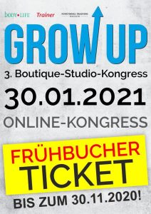 Bis 30. November können Sie sich noch zum vergünstigten Preis von 9 Euro anmelden. Danach sind die Tickets für 19 Euro erhältlich. Anmeldungen unter: www.bodylife-medien.com/events Impressionen und Videos vom vergangenen GROW UP gibt es unter folgendem Link: www.bodylife.com/videos/videos- grow-up/