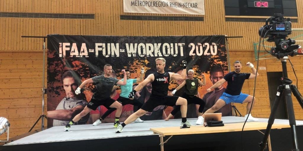 IFAA GmbH ǀ Am 19. September fand das interdisziplinäre IFAA-Fun-Workout via Facebook-Stream statt. Übertragen wurde das Event live aus dem Olympiastützpunkt in Heidelberg, auf der Bühne standen die prominenten Presenter Petra Havelkova (DAYO), Marcel Kuhn (Dance for all), Peter Werle (Tôsô X®), Christian Polanc (dancit®) und Mathias Naujocks (Workout & Core 3D). Zahlreiche Fitnessfans aus der ganzen Welt, u. a. aus Indien, der Slowakei, Polen oder der Schweiz, nahmen an dem Fun-Workout teil. „Die Begeisterung der Teilnehmer war einfach phänomenal. Genau das wollten wir mit diesem Format erreichen: gemeinsam eine gute Zeit zu erleben und sich auszupowern. Ursprünglich hatten wir an diesem Tag ja alle zusammen in Heidelberg unser legendäres IFAA-Festival feiern wollen. Mit dem IFAA-Fun-Workout konnten wir dafür sorgen, dass trotz Corona alle überall auf der Welt Spaß haben konnten,“ freut sich Veranstalter Alexander Pfitzenmeier. Die Aufzeichnung des fast kompletten Livestreams ist ab sofort online auf dem IFAA-Youtube Kanal abrufbar.