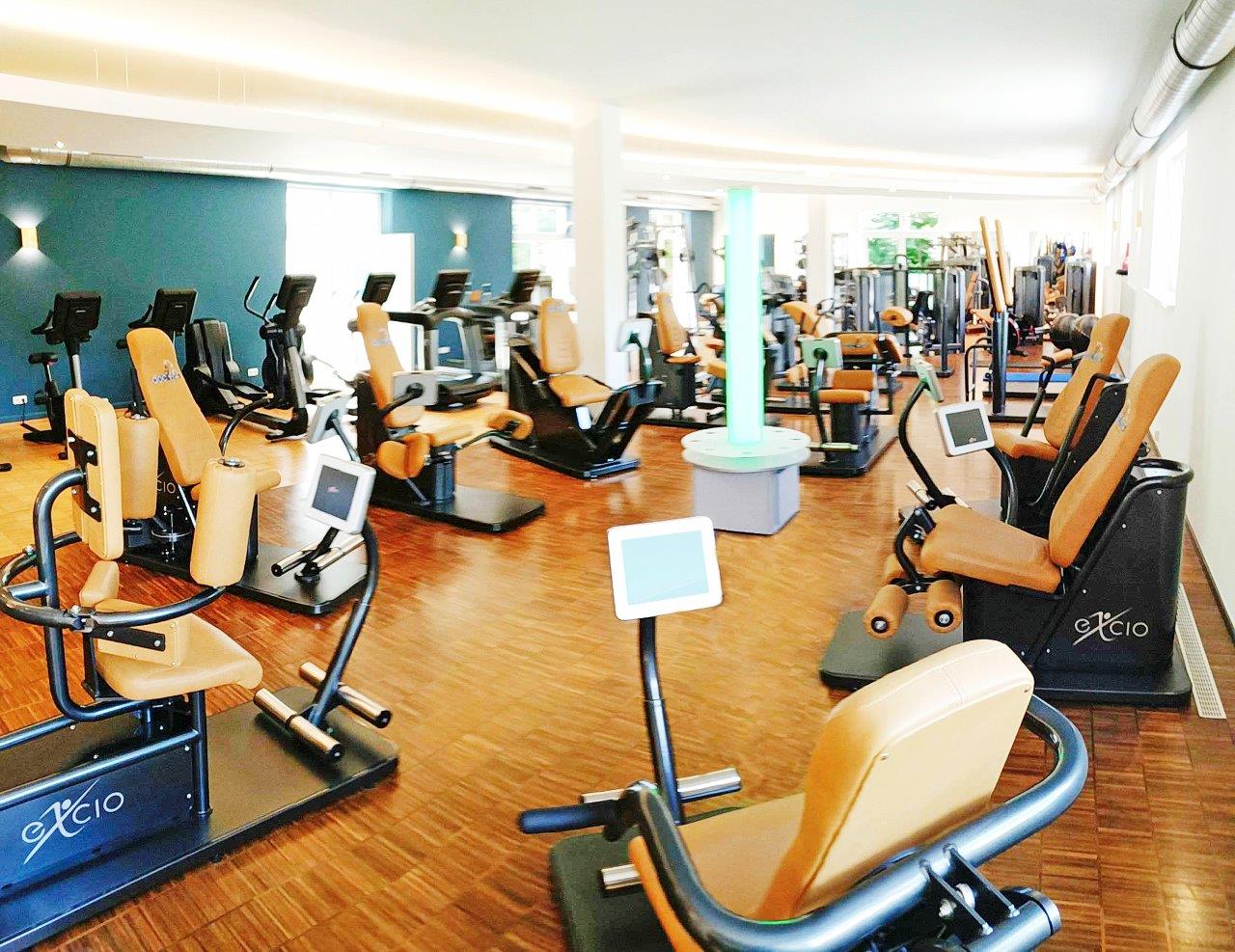 Ausstattung des Clubs: Moderne Ausdauer- und Kraftgeräte von Life Fitness, Funktionalequipment/Life Fitness, exciozirkel, Dehnzirkel von excio, Pelvic Beckenbodentrainer von excio, 12 IC7 Bikes von ICG, Cardio Scan, Polar.