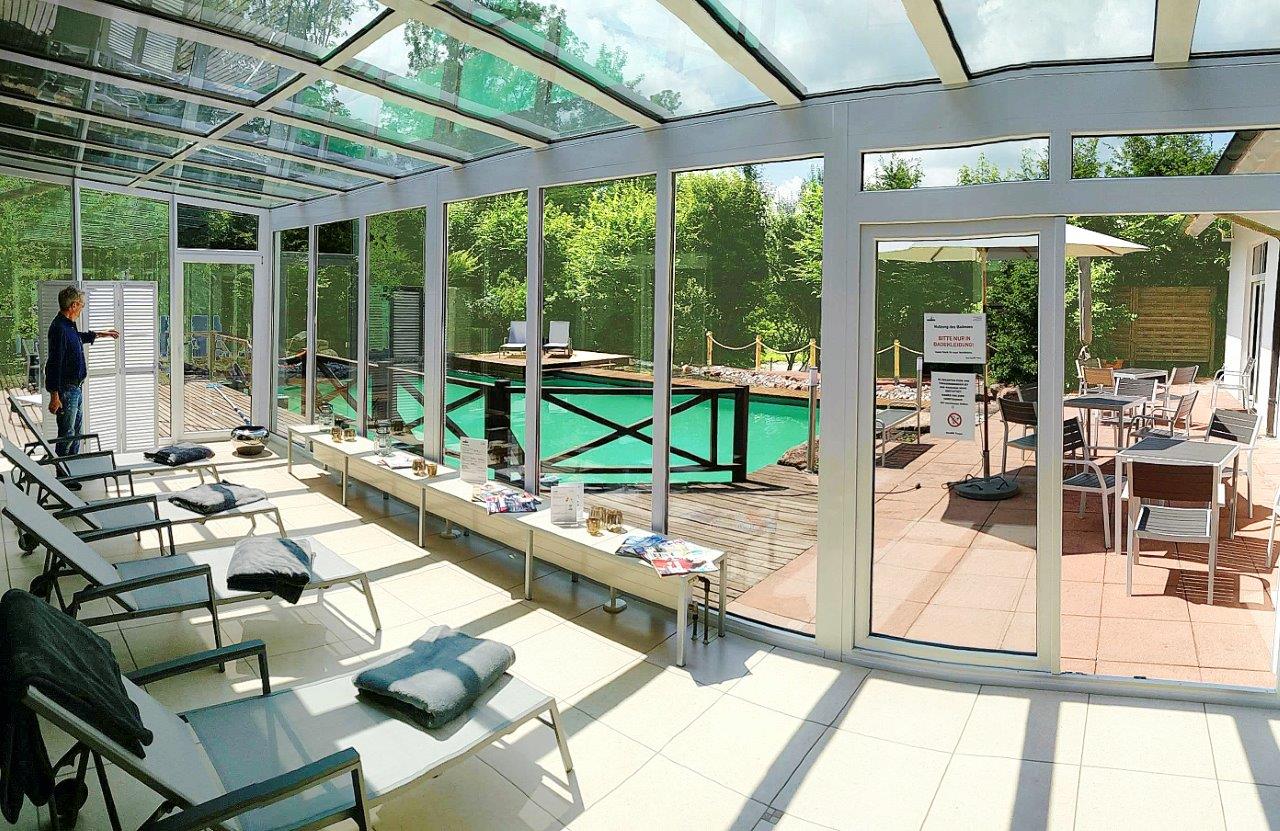 Besonderheiten: Outdoor-Trainingsfläche, über 25 Kurse pro Woche (u.a. Yoga, Step & Style, Hot Iron, Body in Harmony, Rehasport einschl. Koronare Trainingsgruppe), Präventionskurse nach § 20, Sonderkurse, Sommeraktionen outdoor (u.a. Aquafit, Surprise-Kurse), Naturschwimmbad, finnische Blockhaussauna, Niedertemperatursauna.