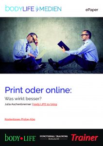 Der Trend ist klar: Die Internetnutzung steigt kontinuierlich und das Online-Marketing eröffnet Fitnessunternehmern neue, spannende Kanäle und Möglichkeiten. Brauchen wir also überhaupt noch Printwerbung? Julia Aschenbrenner erläutert Vor- und Nachteile der beiden Werbeformen.