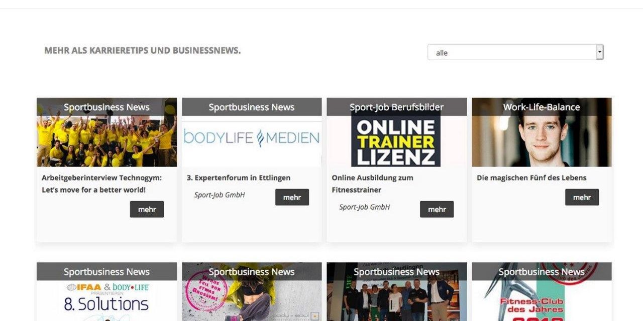 Sport-Job.com GmbH | Neben dem Stellenmarkt und der Möglichkeit, sich als Arbeitgebermarke zu präsentieren, bietet Sport-Job der Sport- und Fitnessbranche auch den Service, eigene Blog-Beiträge zu relevanten Jobthemen zu veröffentlichen.