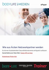 Jeder Fitnessclub will sie, kaum einer hat sie: funktionierende Netzwerke und Kooperationen vor Ort, in denen auch Ärzte zu finden sind. Nicht zuletzt durch den leider immer noch vorherrschenden schlechten Ruf von Fitnessstudios sind Kooperationen mit Ärzten nicht einfach zu schließen. Unmöglich ist es aber nicht, eine solche Zusammenarbeit aufzubauen. Daniel Rothmund und Peter Röhr erläutern, welche Voraussetzungen dafür nötig sind.